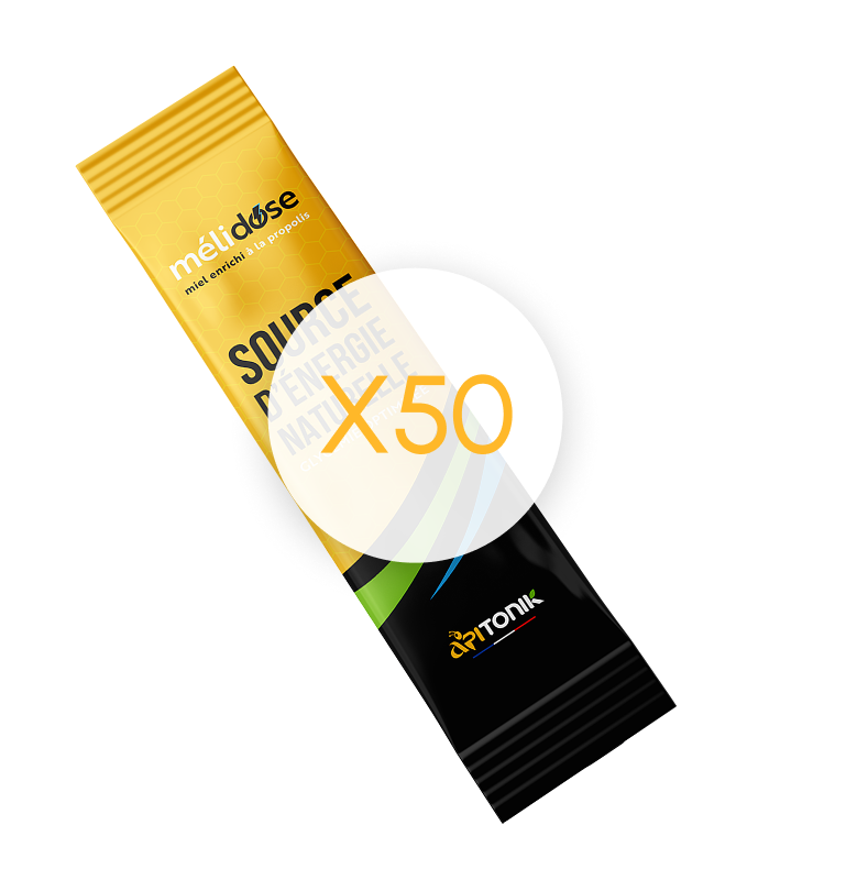 Le Pack Harmonie Apitonik contient 50 mélidoses individuelles de notre préparation exclusive à base de miel enrichi à la propolis.